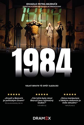 Lehce temné a děsivé představení podle proslulého románu George Orwella. Velký bratr tě sleduje. Vždy a všude. Ocitáme se v Oceánii, jedné ze tří supervelmocí, které spolu bojují o nadvládu na Zemi. Hlavní hrdina Winston je členem Strany, jež ovládá veškerá média i myšlení lidí. Winston si ovšem uvědomuje, že Strana lže, což pro něj znamená jistou smrt. Dramatizace proslulého románu George Orwella z jeviště Divadla Petra Bezruče je stejně jako předloha plná temných, děsivých obrazů. Vypráví o manipulaci s lidskou myslí a nutí nás se ptát, kdo jsme a kde jsou naše hranice? |