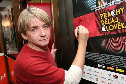 Michal Suchánek podepisující a pózující